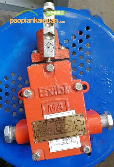 GEJ30跑偏傳感器為本質安全型 體積小、重量輕、密封性能好、維護方便;觸點動 作后還留有較大的探桿轉動緩沖角,使其本身不易損壞;探桿上裝有滾動護套,避免探桿和膠帶間摩擦。